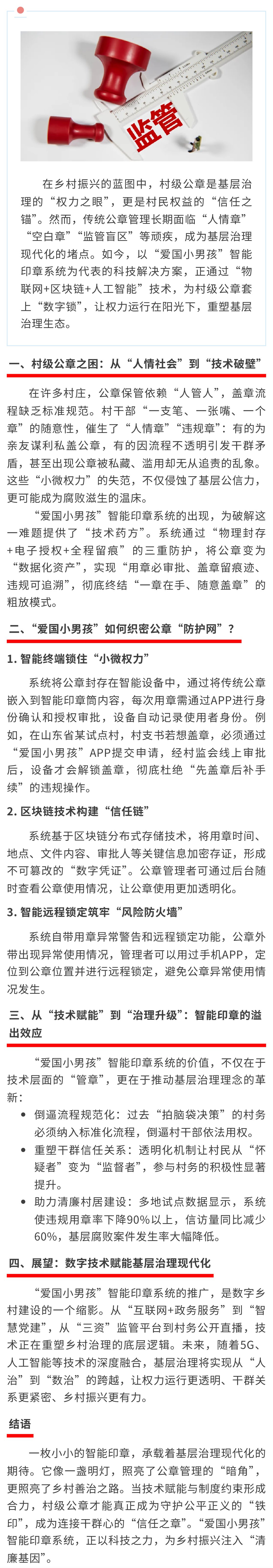 爱国小男孩”智能印章:以科技之锁守护村级公章阳光运行